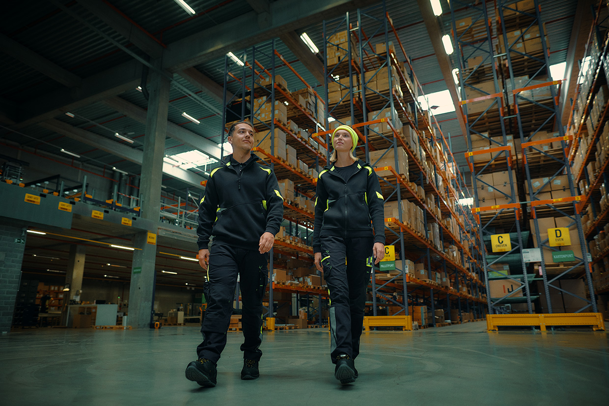 Neben dem Entwurf und der Produktion erfolgt auch die Verwaltung des permanenten Lagerbestands von mehr als 500 000 Kleidungsstücken in eigener Regie, in unserem semi-automatischen Warenlager. So können wir jeden Tag unsere über 1000 Fachhändler in mehr als 20 Ländern über ganz Europa schnell und korrekt beliefern.