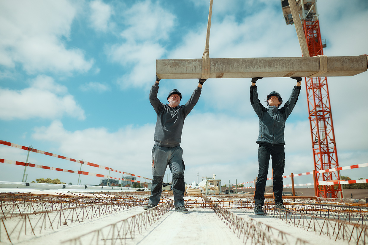 Arbeitshosen, die dank mechanischem Stretchgewebe und Stretcheinsätzen viel Bewegungsfreiheit bieten.